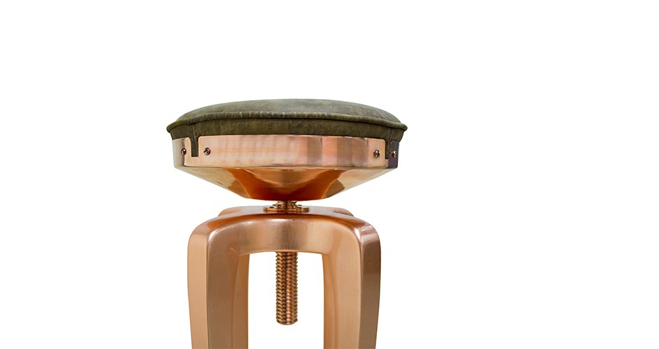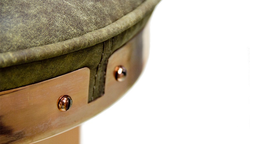 Stool MOHAWK from Portuguese manufacturer Brabbu. Strong frame of brass. Revolving bar stool without a back and its components balances the elegance of the shape of legs and comfort leather padded seat. The Mohawk name for the North American region of copper mines, reminiscent indigenous people, who fought against rival tribes with distinctive hairstyles. The difference that bar stool without back brings a modern interior. The perfect combination between the strong position of the tribal and stylish hair, for a distinctive atmosphere in modern home decor
