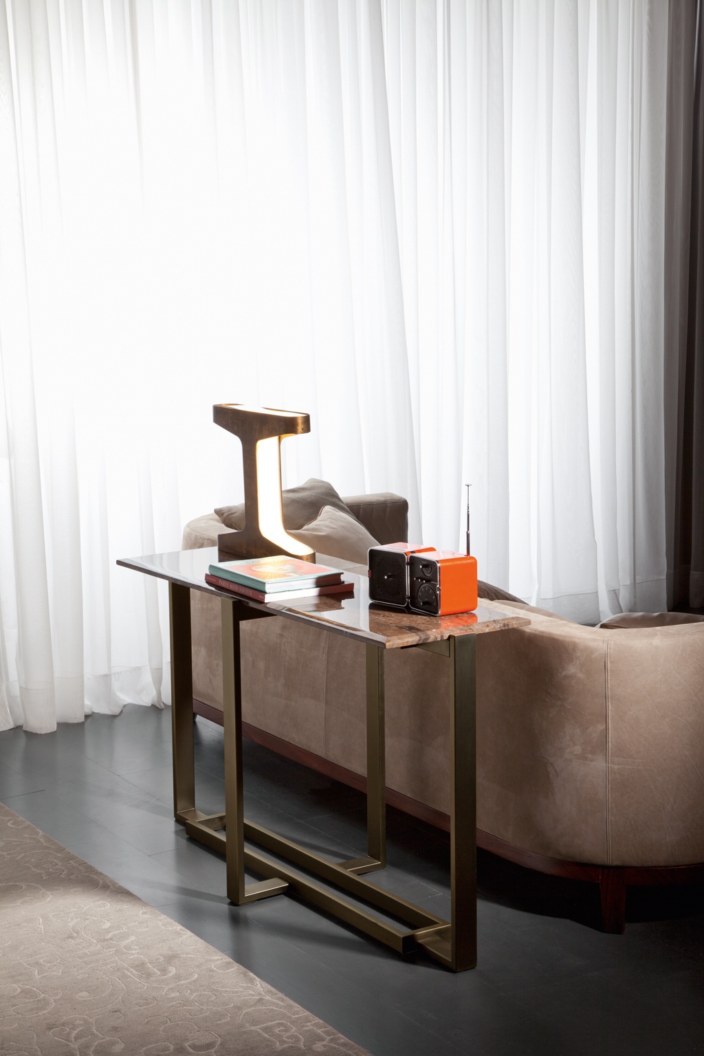 Console CAVALIER from the Italian manufacturer MOBILIDEA. The model is made in modern style. The legs are metal. Top in rectangular shape is made of wood. The finishing - varnish.