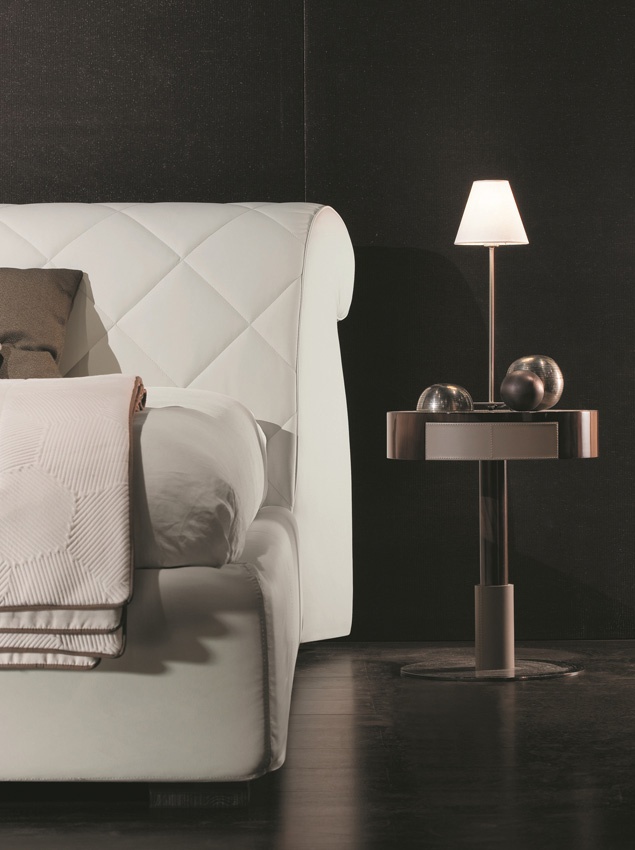 Double bed TAYLOR from the Italian manufacturer MOBILIDEA. The body is made of wood. The surface is completely covered with leather. The headboard is soft. Color scheme - white.