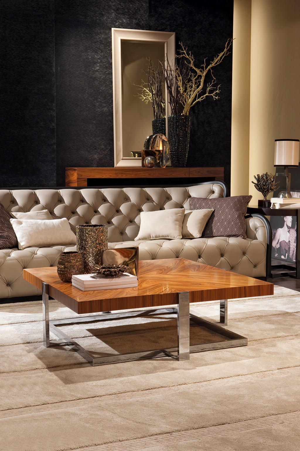 Coffee table BIG KING from the Italian manufacturer MOBILIDEA. The model is made in a modern style. The legs are metal. The top square of wood. The surface is covered with a glossy varnish.