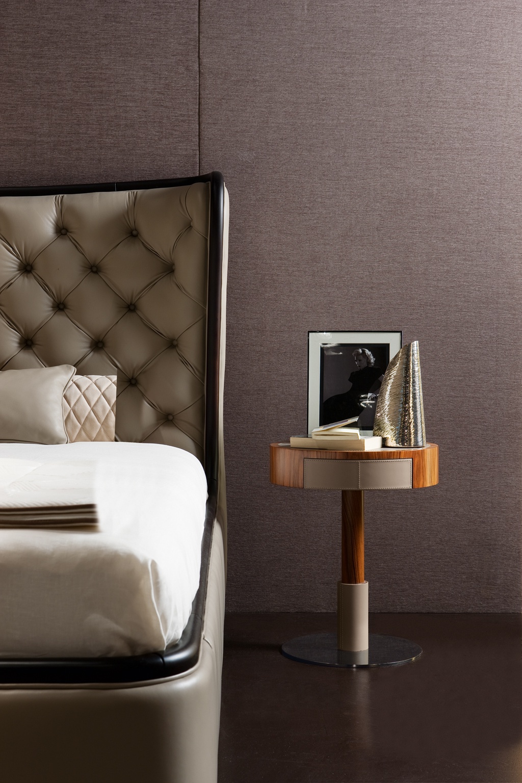 JAMES pridivanny table from the Italian manufacturer MOBILIDEA. Model round base and top. Material - wood and metal. The varnish finish offered.