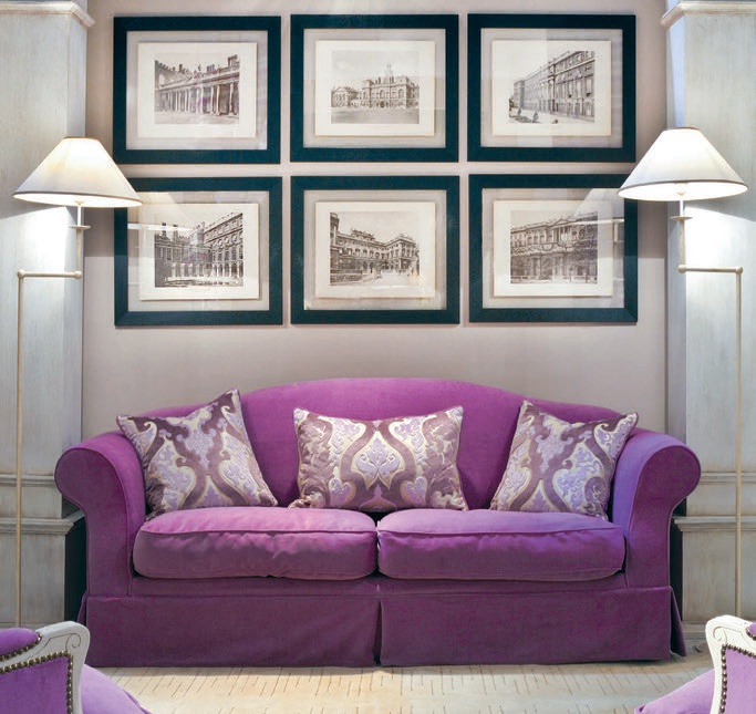 A double sofa from Italian manufacturer Isabella Costantini. The picture shows a model with wooden frame and fabric upholstery. The material and color of upholstery you can choose from the catalogue of the factory. Sofa will complement the interior living room in modern style.