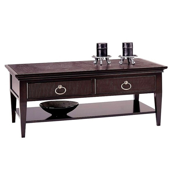 A low table with two drawers and lower shelf, Selva. Product colors mocha, black. The frame is made of beech wood. Casing finish with wood veneer with subsequent varnishing. As a decorative metal hardware is used. The classic style fits perfectly into any interior.