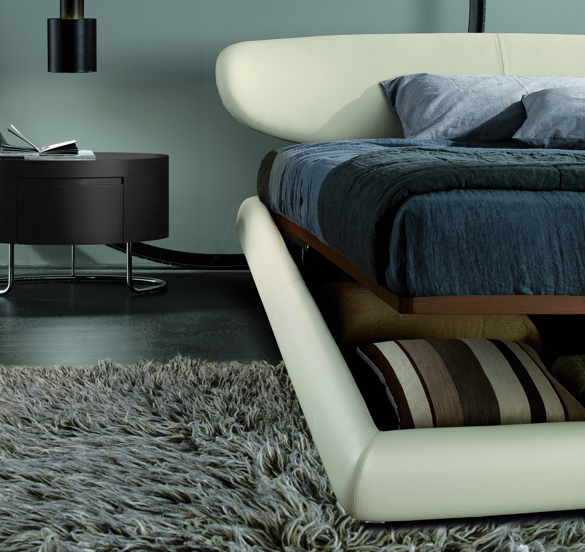 Double bed Nuba from Italian manufacturer MisuraEmme. The model is made in modern style. As upholstery textiles or leather. Will fit harmoniously into the interior is simple and cozy bedroom. Very convenient location of the drawers under the bed - You will always be able to clean there bedding.