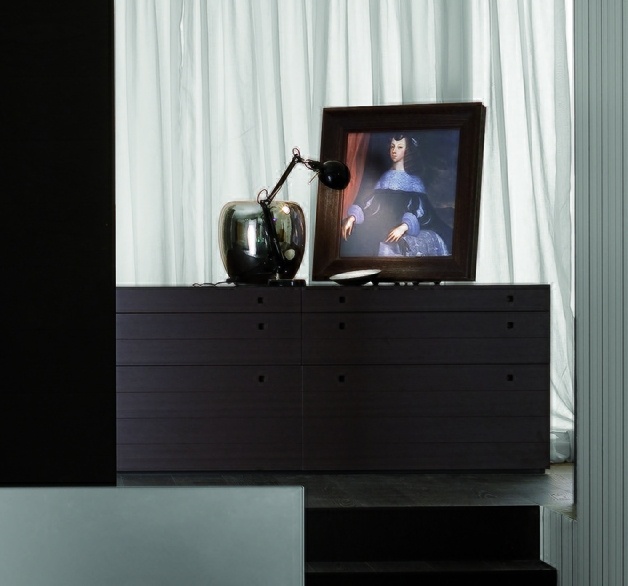 Dresser with drawers Le Notti, Mobileffe. Excellent model in a contemporary style. For finishing the wood veneer is used. Product gray color perfectly fit into Your bedroom.