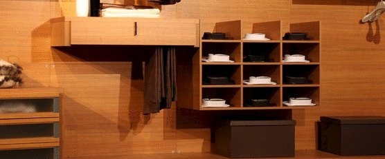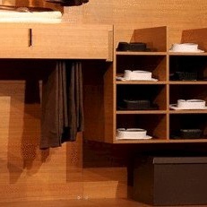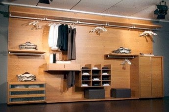 Dressing BoiserieKLASS, Mobileffe. The model, in a modern style made from solid wood and varnished. Simple but comfortable shelves of different dimensions. Perfect for home with walk-in closet. Color of Cabinet from the manufacturer in natural color of wood.