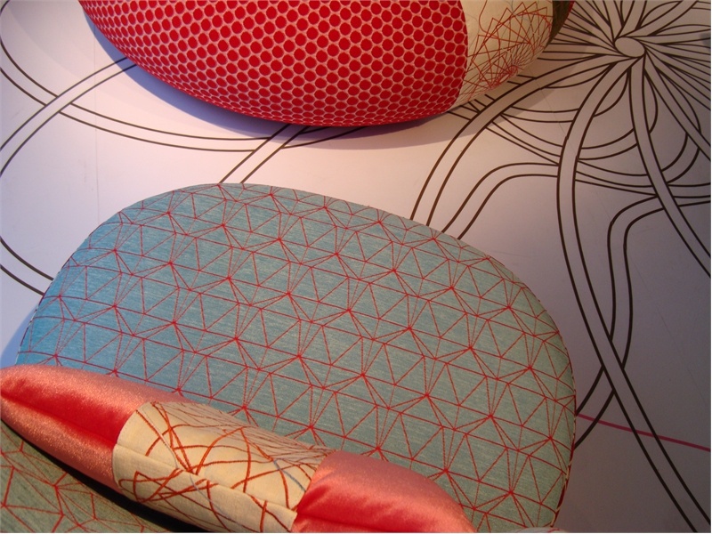The Juju chair from the Italian manufacturer Moroso. A frame of wood filled with polyurethane foam of varying stiffness and polyester fiber. The chair is covered in fabric from the collection of Sushi, specially created for this model. A distinctive feature of the collection are the embroidered designs, floral ornaments, geometric shapes. Great, cozy addition for your living room.