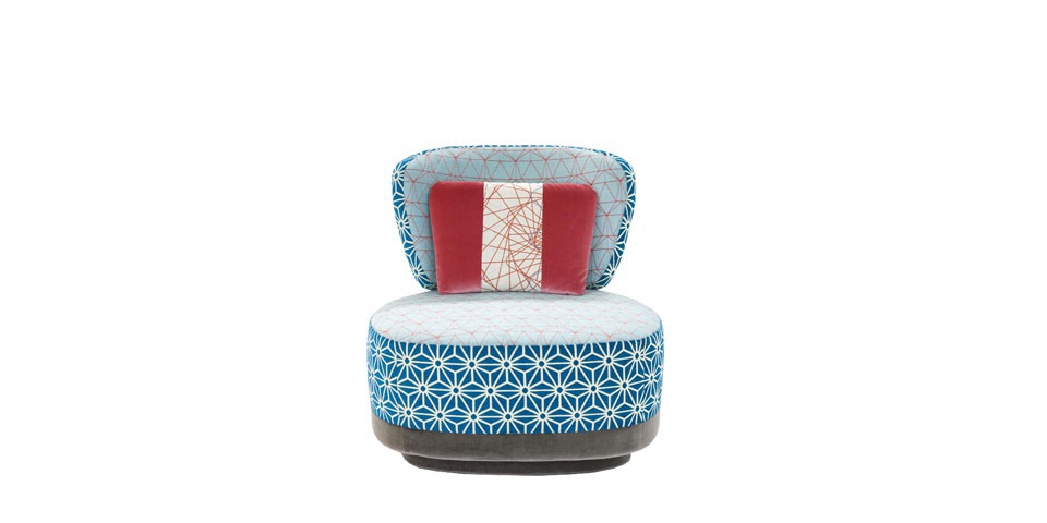 The Juju armchair is upholstered in fabric, Moroso