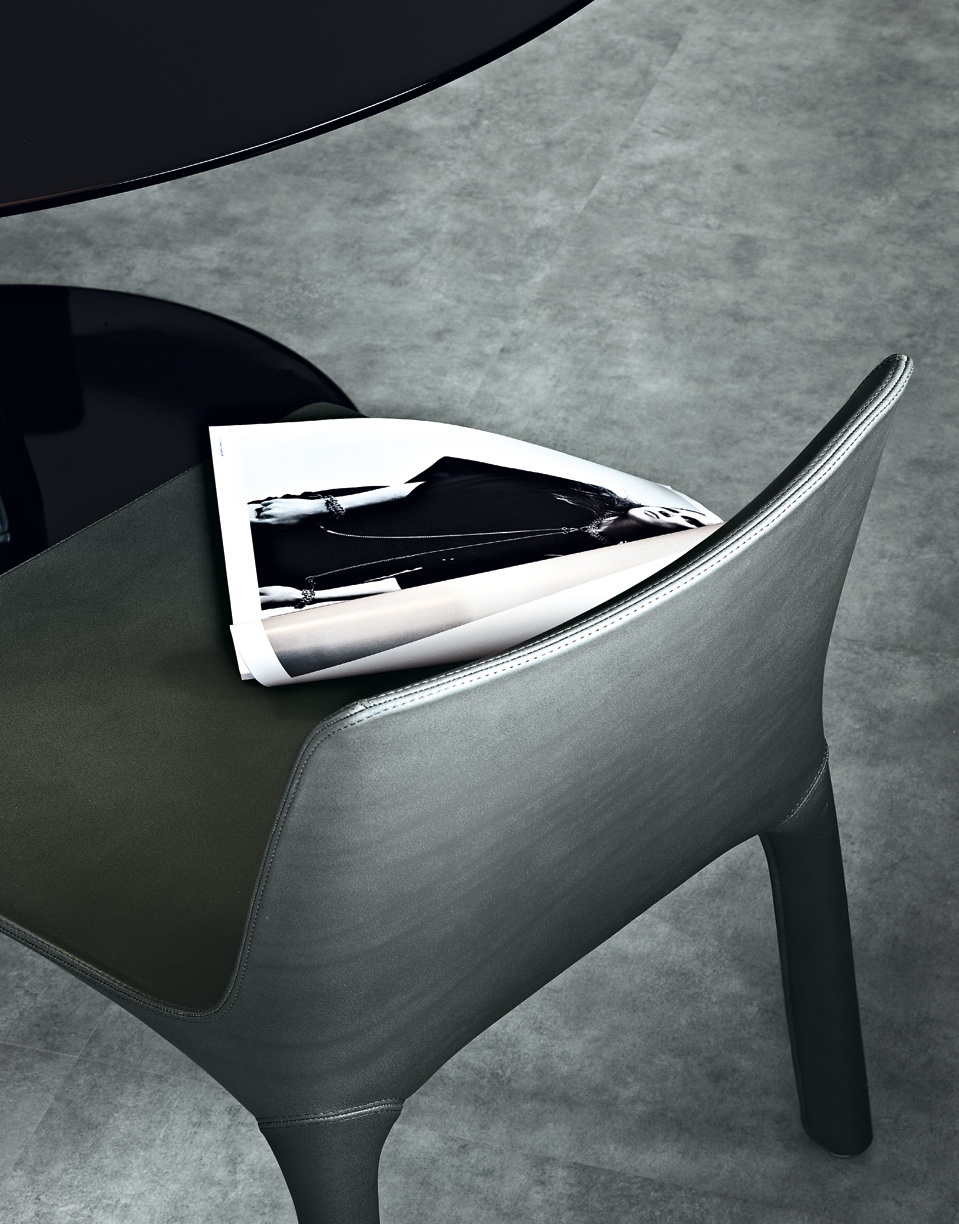 The Manta chair from the Italian manufacturer Poliferm. Chair with high back fully covered with skin. Available versions with or without armrests. The colors in the catalog of the manufacturer.