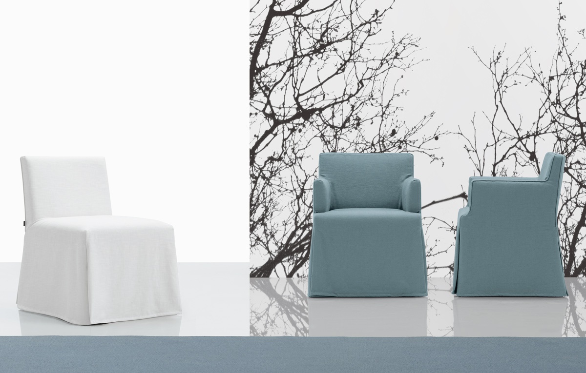 Chair Velvet-Velvet Due from Italian manufacturer Poliform. The upholstery of the chair is made of high quality velvet. The color of this model of chair is white and black or grey. The modern style of execution.
