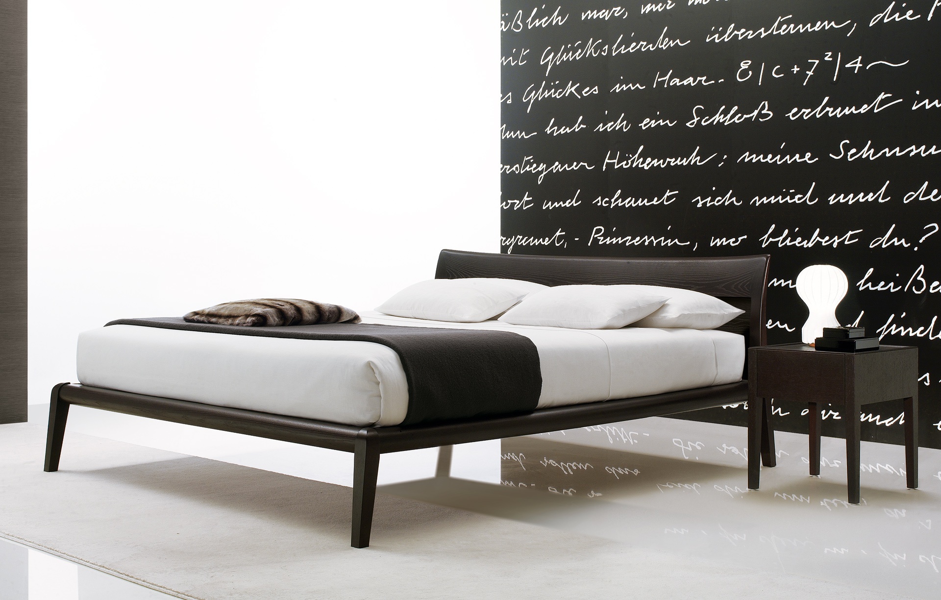 Bed Memo from the Italian manufacturer Poliferm. Bed from designer Carlo Colombo (C. Colombo). Finishes, wenge, American walnut and Matt lacquer. The upholstery leather.