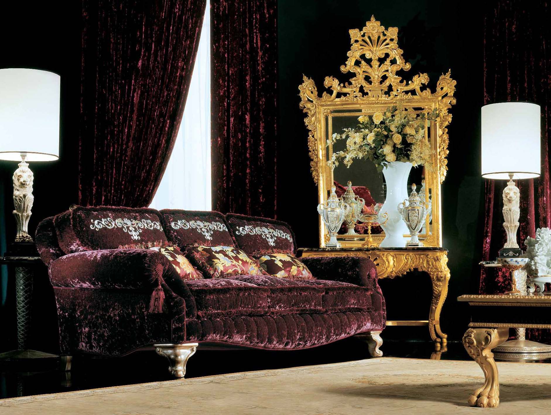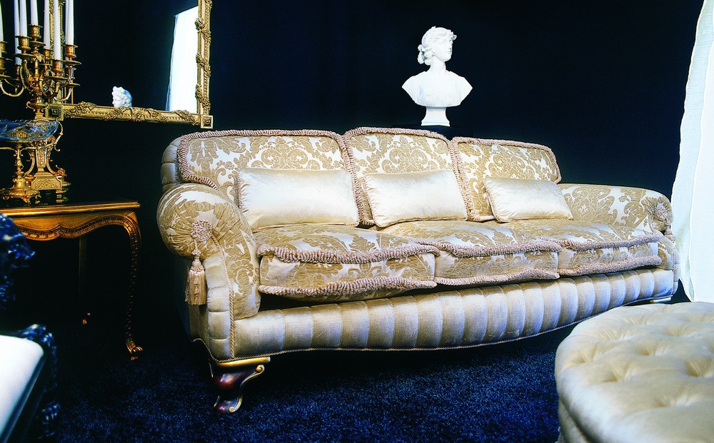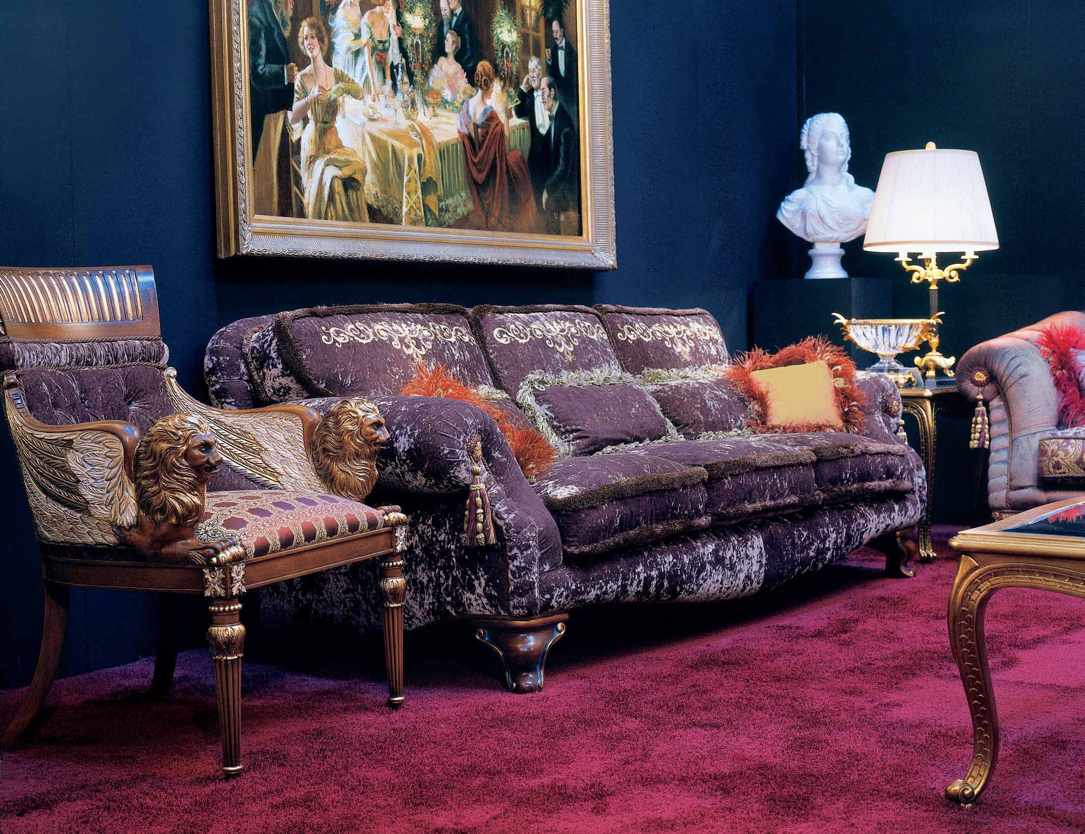 Asia sofa from Italian manufacturer Zanaboni. The model is a classic style, frame made of solid wood. Legs are handmade with decorative carvings. As upholstery textiles.