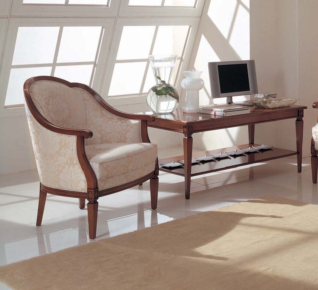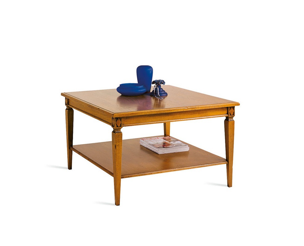 Low table with bottom shelf from the Italian manufacturer Selva. The furniture is produced in a classical style, in natural wood color. The framework is proposed from Linden wood, with the subsequent varnishing and finishing wood veneer. This coffee table is also suitable for personal study and perfectly fit into any room.