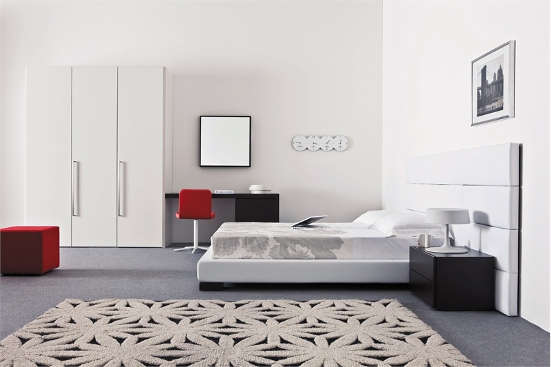 Children Mia, kit for teen rooms from Italian manufacturer Pianca. Area is provided for sleeping and working area. There are many options of materials and finishes. Beds of different width and height. All models can be equipped with built-in storage capacity, a popular solution for small rooms. Role play a headboard wall panel.