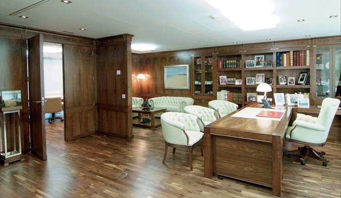 Set of furniture for the office DESPACHO from the Spanish manufacturer Pico. The set is made manually. Includes a modular shelving system with open and glazed facades, Desk and mobile Desk chair in leather upholstery with decorative stitch-Capito. The ensemble complement of club armchairs and sofas and coffee table. In addition, the interior can be included in a panel-boiserie in the same wood as the furniture, available in textile and leather inserts. The collection is offered in an interline interval of valuable breeds of wood: walnut, sycamore, beech, Spanish walnut, rose, mahogany and other metal Accessories.