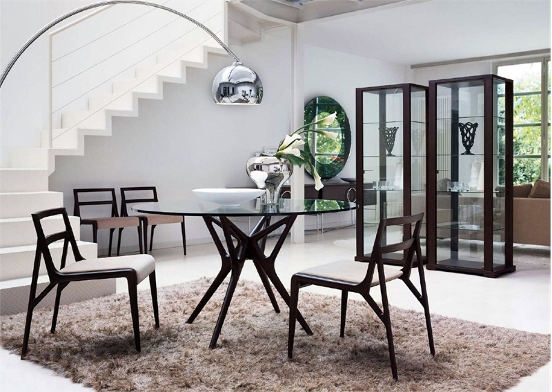 Icaro dining table by Italian manufacturer Porada. Dining table figured base. Round top is made of glass. Material frame solid walnut Canaletto stained wenge or painted with lacquer, not closing the pores of the wood.