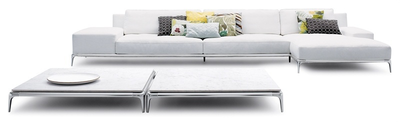 Park coffee table from the Italian manufacturer Poliferm. Low table aluminium frame finish in Matt or glossy lacquer. The proposal from the manufacturer in 25 colors, in a lacquer finish against scratching. The top is made of marble. The model can be used independently or be offered as an element of the modular sofa.