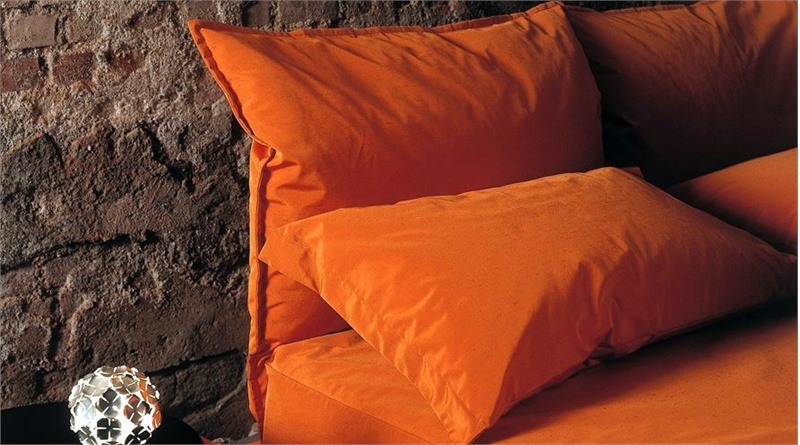 Sleepy bed from Italian manufacturer Mussi. Bed on steel frame, painted by powder method. Legs made from solid beech, stained walnut or wenge. The frame of headboard is made of steel. The sides are made of wood and plywood of poplar. Base for mattress is made of laminated beech lamely. The filler is polyurethane foam and nylon. Pillow with feather-filled insert from poliuretana.