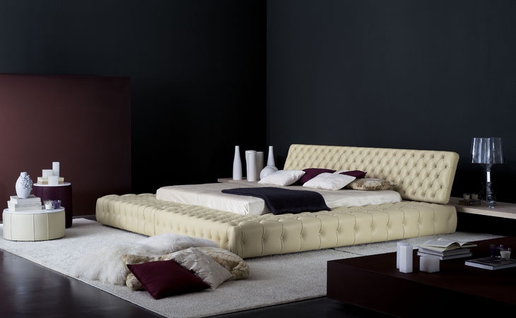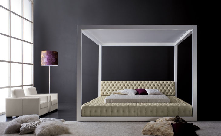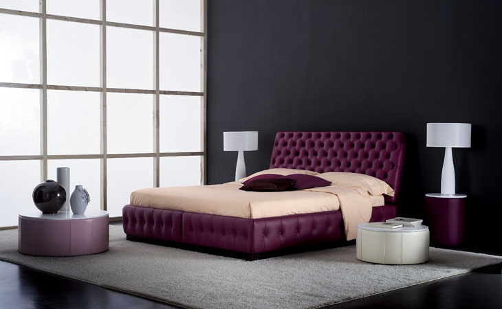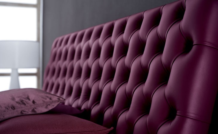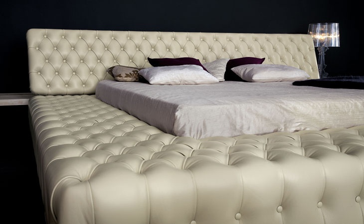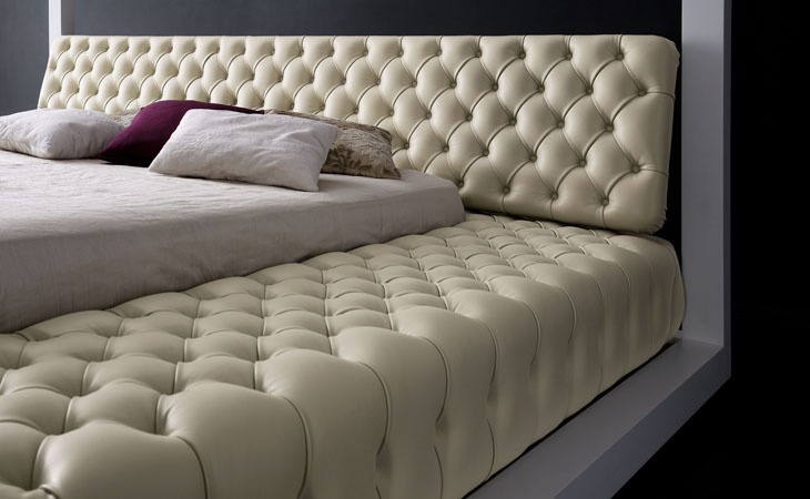 Double bed with high upholstered headboard SIBARI from the Italian manufacturer Valdichienti. The model is made in a modern style, frame made of solid wood. For upholstery, leather or textiles from a range of companies. Colours in stock.