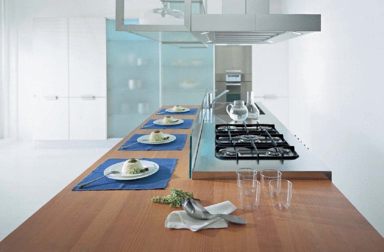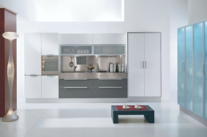 Set for Dream kitchens from Italian manufacturer Pedini. The body is made of solid wood and stainless steel. The facades are treated with a glossy varnish. Shutters two types of deaf and glass. The model is made in a modern style.