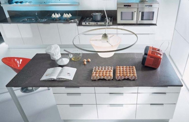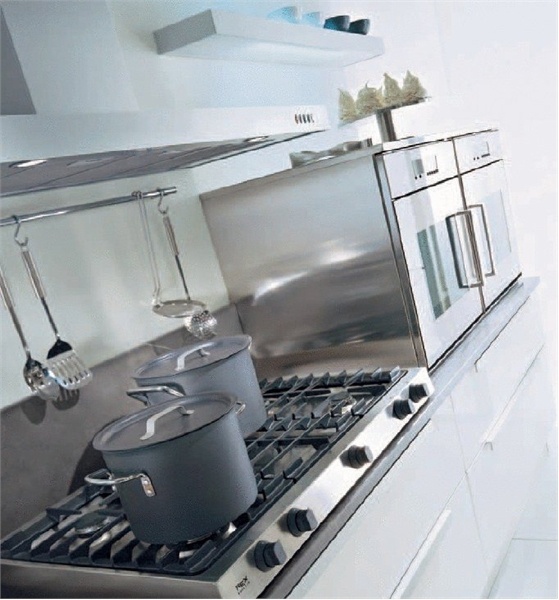 Set for Dream kitchens from Italian manufacturer Pedini. The model is made in a modern style. The facades are made of chipboard and solid wood. Stainless steel fittings. Fold the upper cabinets made of transparent glass. Offered lacquer finish in white.