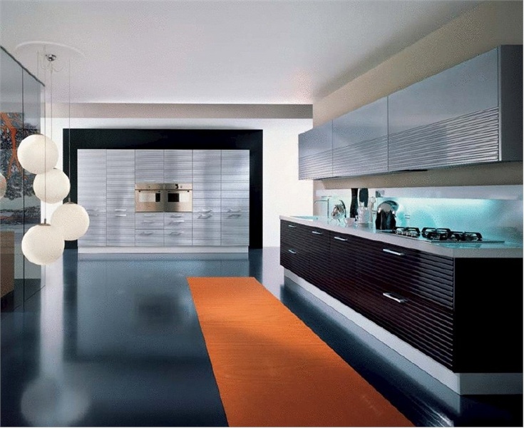 Kitchen Outline from Italian manufacturer Pedini. Consists of a system mounted and floor cabinets. Material - MDF-finishing with veneer or lacquer from the catalog of the manufacturer. The working surface is covered with marble. Stainless steel handles. Headsets are made in a modern style.