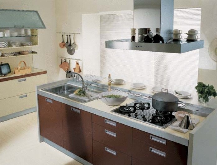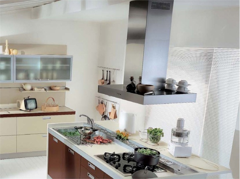 Petra kitchen from Italian manufacturer Pedini. Kitchen set with the island made on the frame of particle Board in melamine finish. Counter, the customer can choose: stainless steel, granite, marble, artificial stone.Finishes - laminate, wood veneer, Matt or glossy lacquer, directed the glass in an aluminum frame. Drawers complemented by closers. Set is made in modern style.