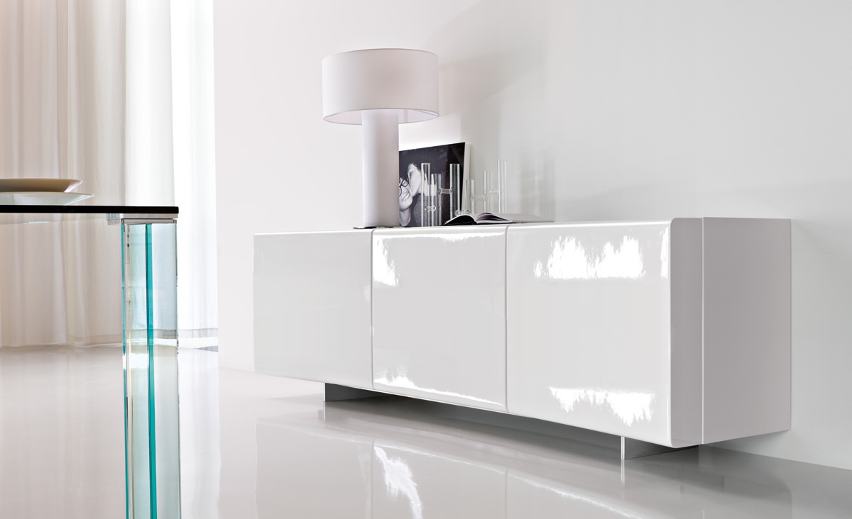 Dresser-chest Bay from the Italian manufacturer Cattelan Italia. The frame pedestals are made from solid wood, and doors made of polyurethane. The color of this model cabinets white.