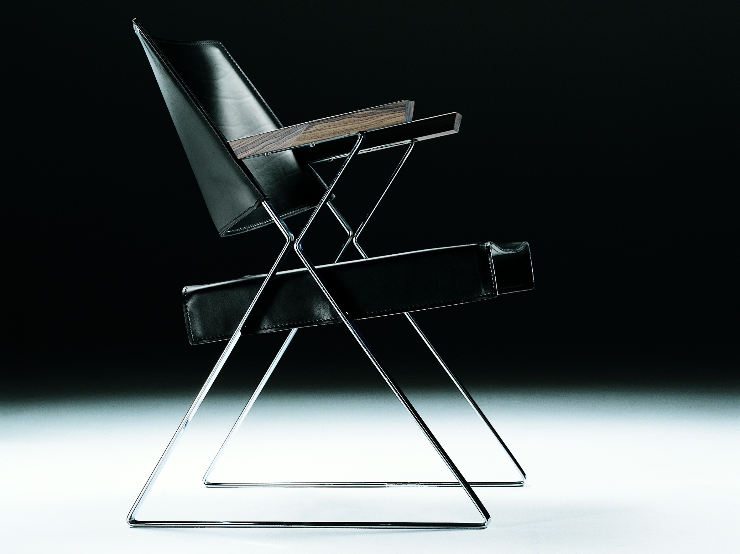 The chair frame is made of walnut or beech wood upholstered in leather or fabric Thomas, Flexform