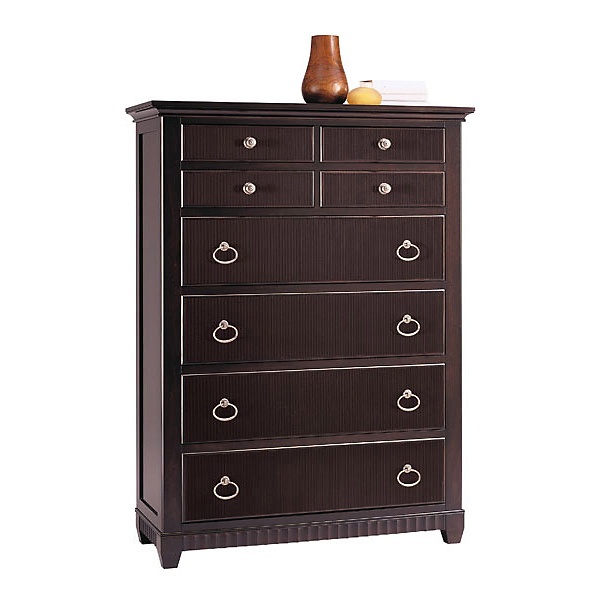 Chest high Voyage from the Italian manufacturer Selva. Model with 4 large and 4 small drawers. The frame is solid Linden, veneered cherry. The front part 4 small drawers is made in grooved wooden version. The front part 4 big drawers can be done either in a grooved wooden version (RI) or in leather, embossed crocodile(PE).