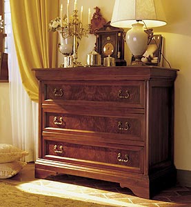 A chest of drawers from Italian manufacturer DOLFI. The frame is made from solid wood in the finishing varnish. Model with drawers of different sizes. The perfect choice for a living room or bedroom in a classic style. Product color natural wood.