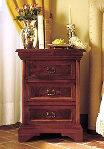 Bedside table from the Italian manufacturer DOLFI. The frame is made from solid wood in the finishing varnish. Decorative accessories - metal. The model will surely embellish the bedroom in a classic style. Product color natural wood.