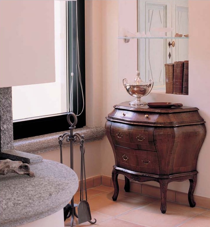 Small chest of drawers Venezia in classical style, the Selva. Model on carved legs made of beech, with a frame made of pine. The sides and the facade is made of veneer wood. The original terrain will make Your exclusive chest.