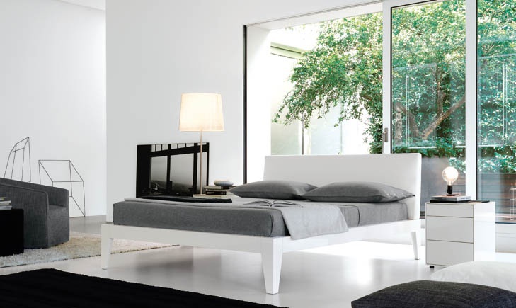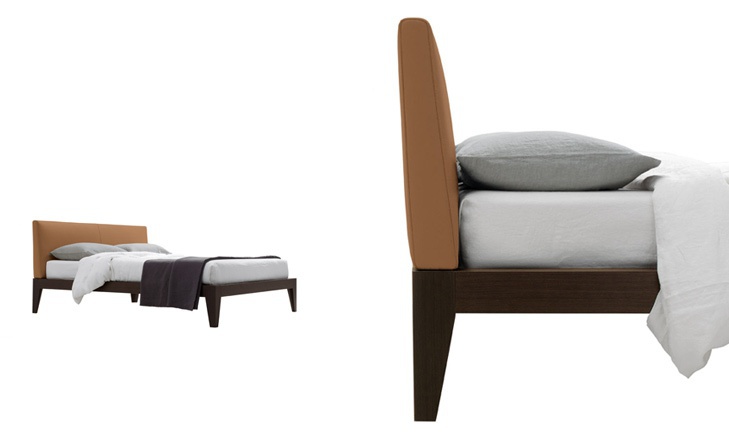 AMLETO bed from Italian manufacturer JESSE. The frame is made from solid oak wood, upholstery - textiles, processing of Lac. Model with double cushioned headboard. Colours in stock.