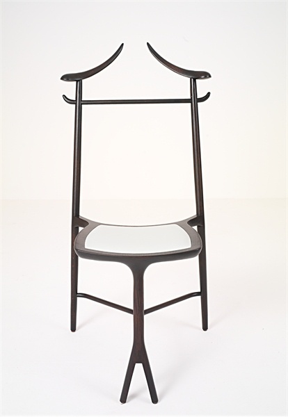 Hanger Chambre close from the Italian manufacturer Ceccotti. The frame is made from cherry wood, oak or American walnut. The seat is upholstered in leather or textiles from a range of companies. Colours in stock. Design model for the modern interior.