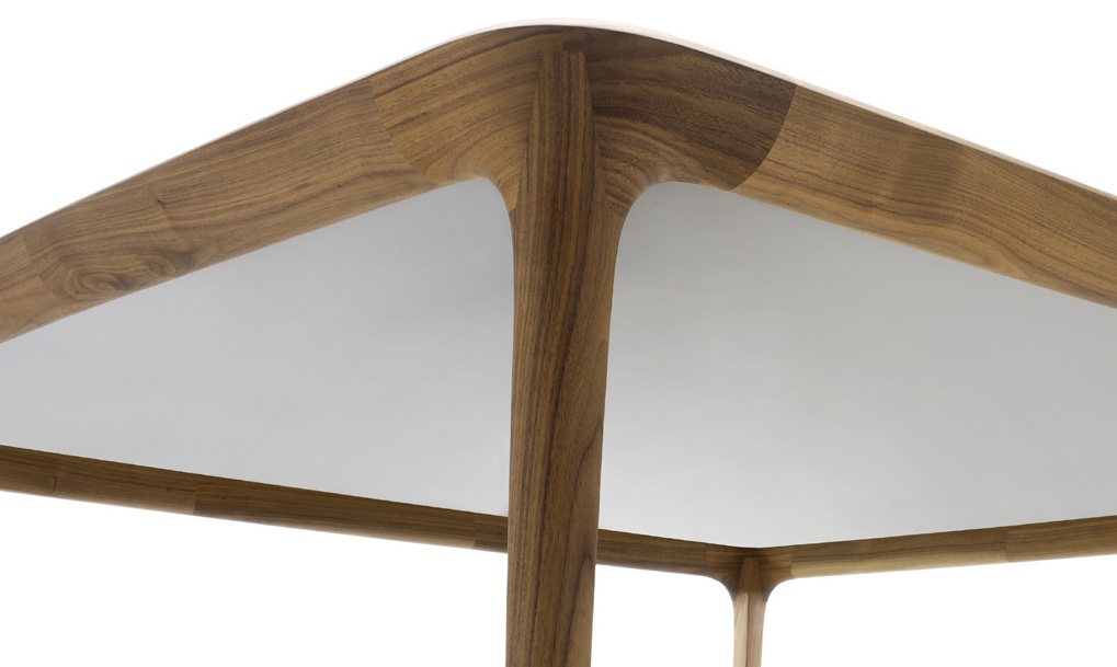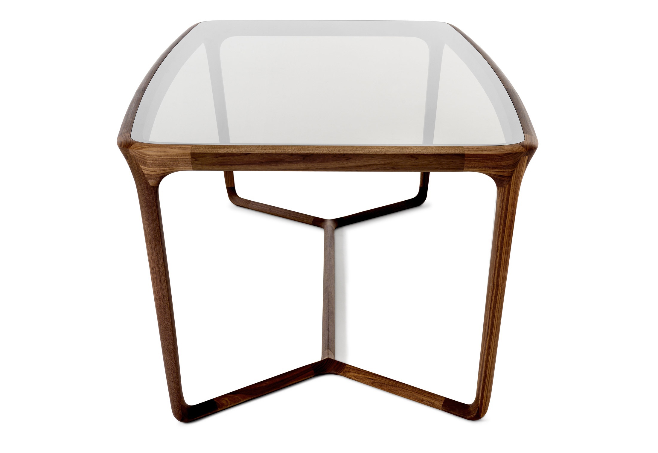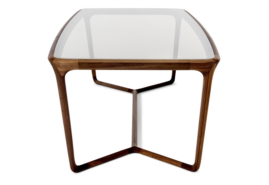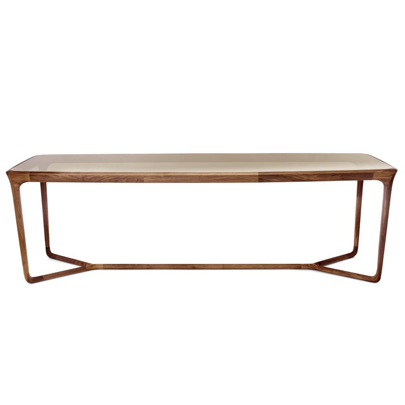 Obi dining table from the Italian manufacturer Ceccotti. The frame is made from solid American walnut. Table top - glass or American walnut. Design model for the modern interior.