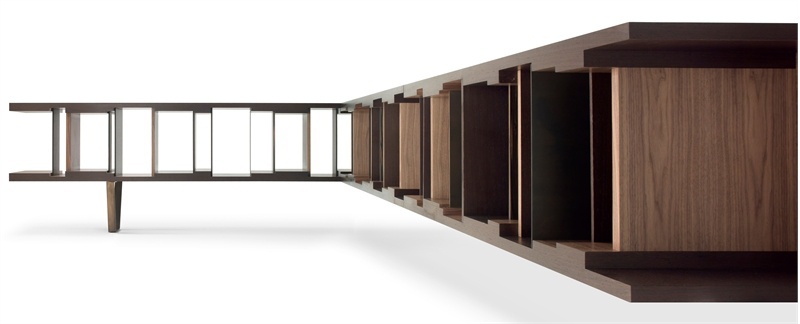 Corner bookcase from the Italian manufacturer Ceccotti. Excellent model with a base of wenge and fittings of brass. Model dark color will be a great addition to living room in modern style.
