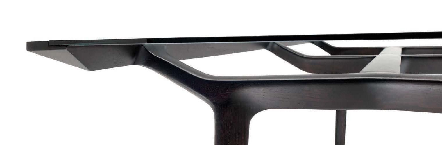 Avio dining table from the Italian manufacturer Ceccotti. The frame is made from cherry wood, oak or American walnut. Worktop - glass. Design model for the modern interior.