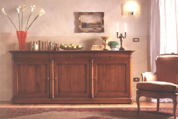 Wooden chest of drawers from Italian manufacturer Pregno. The body is made of wood, metal handles. This functional piece of furniture is made in classic style. Colours in stock.