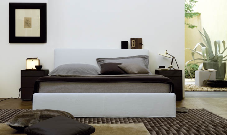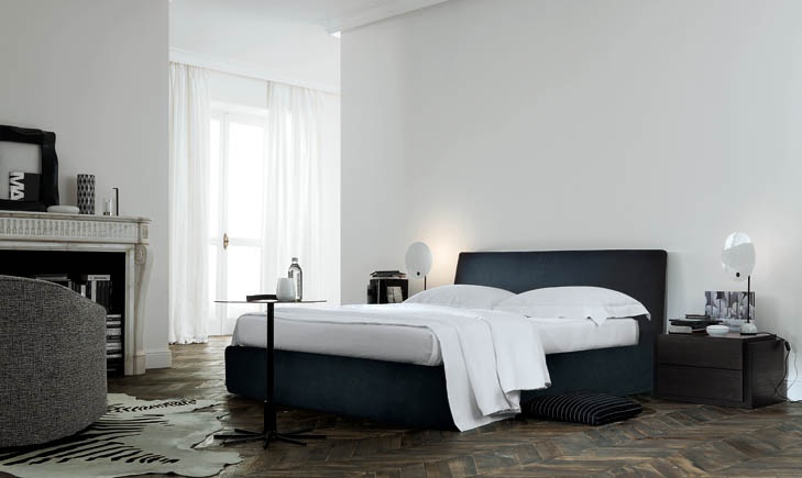 The ROGER bed is from Italian manufacturer JESSE. The frame is made from solid wood, upholstery - leather or textiles from a range of campaigns. Model with double cushioned headboard. Product color white, gray, black.