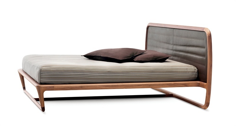 Bed Valentina, Ceccotti. Double bed with high headboard. The base is made of solid wood. Headboard upholstered in leather. The model is executed in modern style in natural wood color.