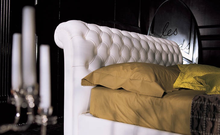 Double bed with high upholstered headboard, BUONANOTTE - Valdichienti