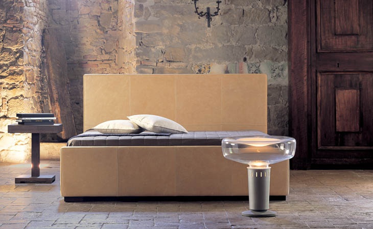 Double bed with high upholstered headboard AMADEUS from the Italian manufacturer Valdichienti. The model is made in a modern style, frame made of solid oak. As upholstery leather from the company portfolio. Colours in stock.