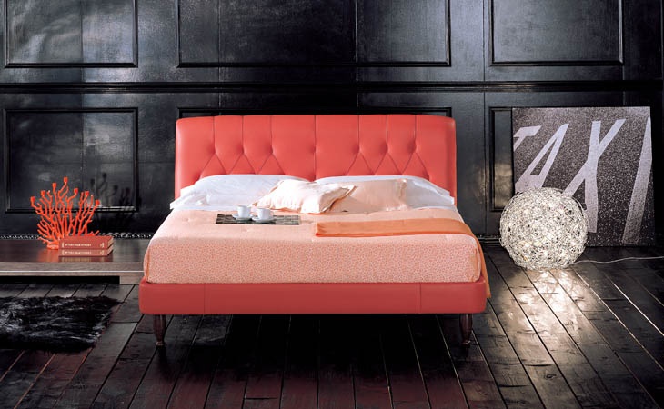 Double bed with high upholstered headboard PRIMA from the Italian manufacturer Valdichienti. The model is made in a modern style, frame made of solid wood. As upholstery leather from the company portfolio. Colours in stock.