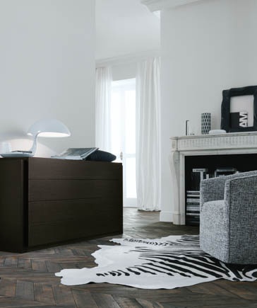 CONRAD a chest of drawers from Italian manufacturer JESSE. The body is made of solid oak in gloss or Matt finish. The model will decorate your bedroom in a modern style. Colours in stock.