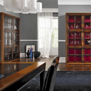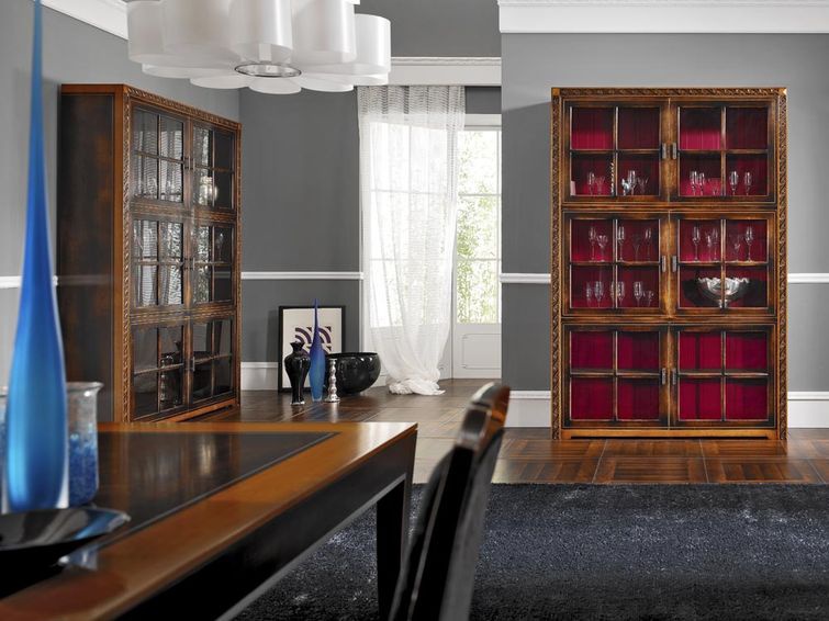 Showcase from Italian manufacturer Pregno. The frame is made from solid wood and varnished in the color of natural wood. Door glass, handle metal. Used elements of hand carving. The model performed in art Deco style.
