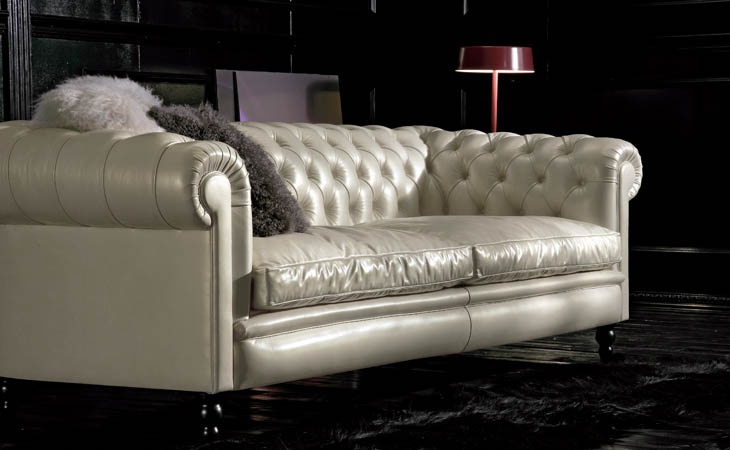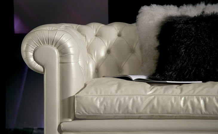 Three seater sofa in leather upholstery, KENSINGTON - Valdichienti