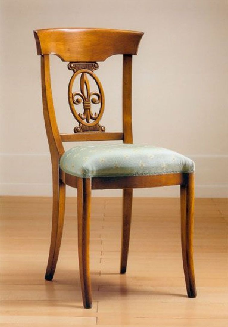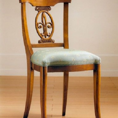 A chair from the Italian manufacturer Pregno. The frame and legs of the chair are made of solid wood, covered with a colourless varnish. High back made with shaped elements. The leg of a chair slightly curved to the sides. For upholstery we use high quality textiles gray. The model is presented in a classic style.