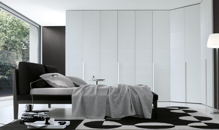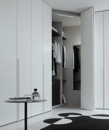 The wardrobe BREEZE from the Italian manufacturer JESSE. The body is made of solid wood, in matte or glossy finish. The model is intended for bedrooms in modern style. Colours in stock.