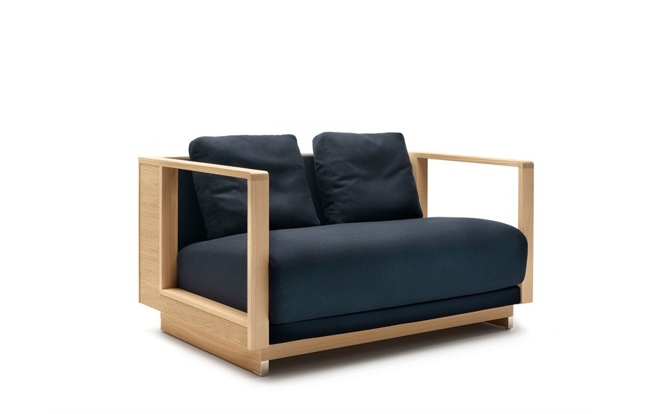 Sofa Small sofa from Italian manufacturer Ceccotti. Two seater sofa with original backrest. The model is made with a frame of oak. As upholstery leather. The color in the catalog.